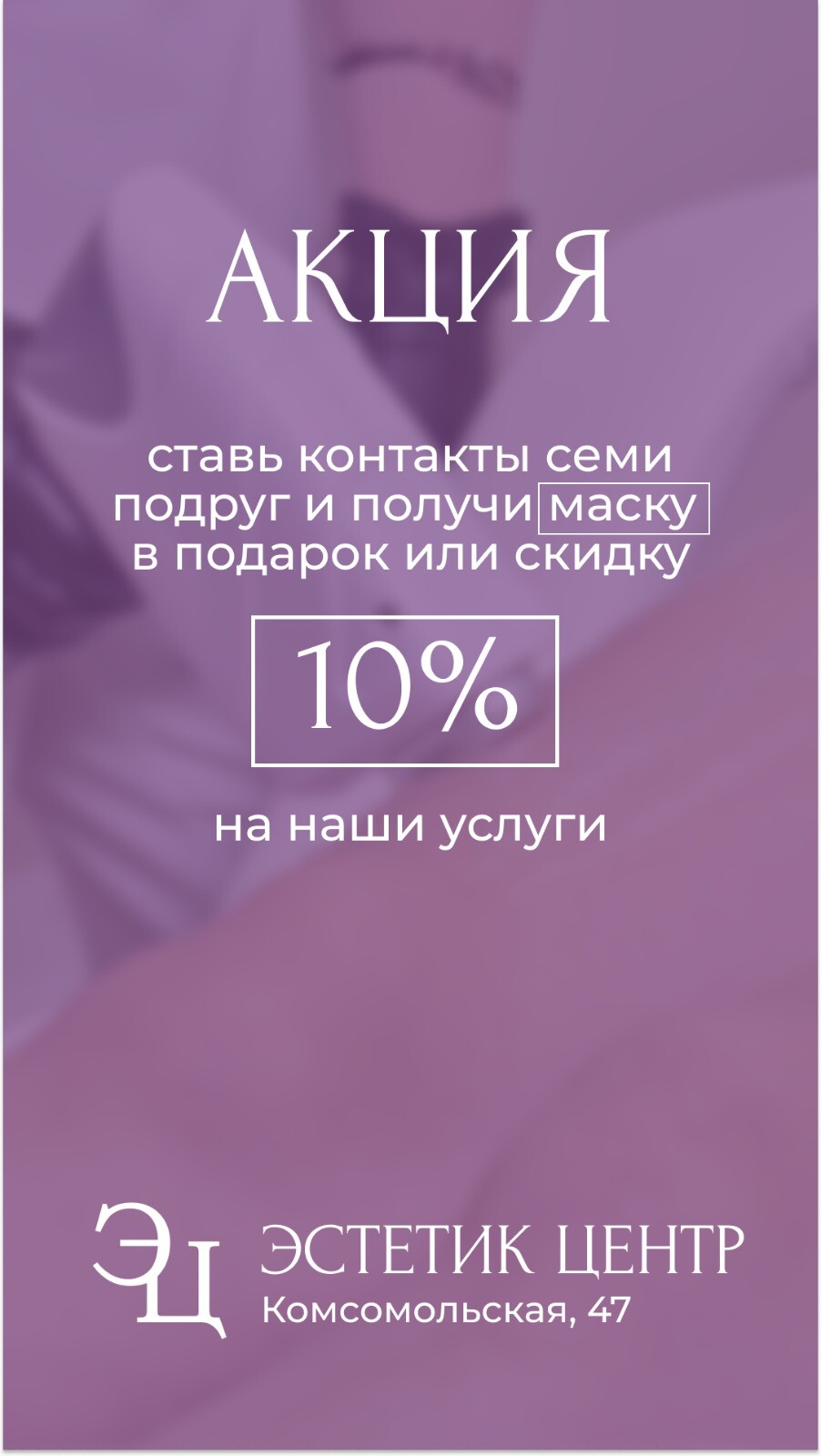 Чем побаловать себя под конец тяжелого трудового дня или в долгожданный выходной после напряженной недели? Выделить немного времени для заботы о своем внешнем виде и самочувствии - лучший вариант отдохнуть и расслабиться. В этом вам всегда рады помочь мастера студии Эстетик Центр. Благодаря их безупречному профессионализму и внимательному подходу к каждому посетителю вы выйдете от нас обновленным и отдохнувшим, и ощущение праздника останется с вами надолго.